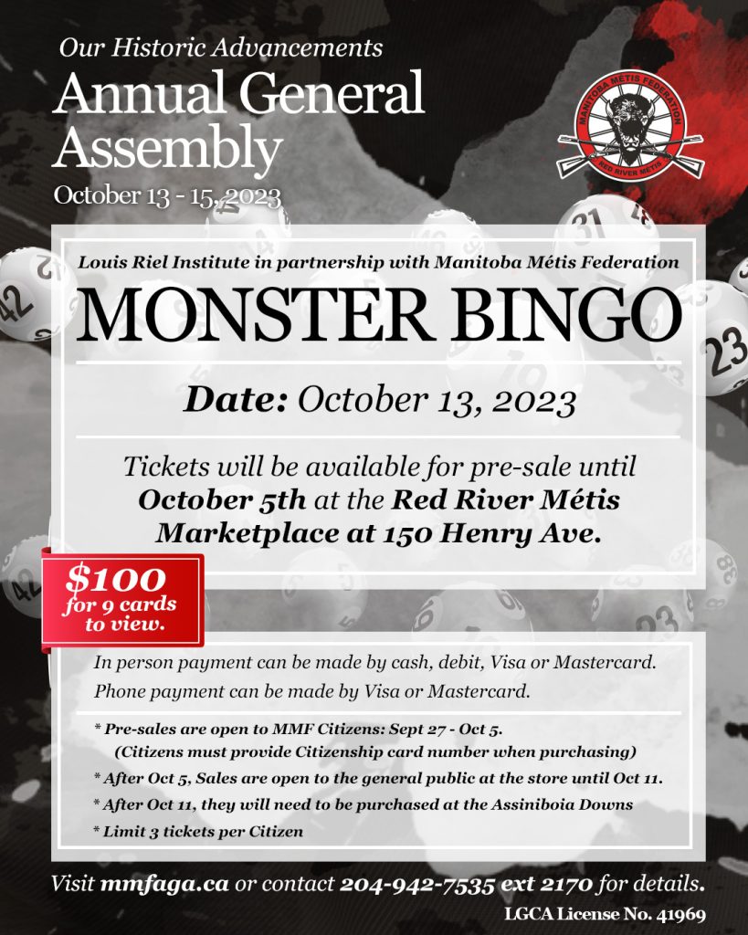 The Manitoba Métis Federation (MMF), the National Government of the Red River Métis, is pleased to announce an Annual General Assembly (AGA) to take place October 13, 14 and 15, 2023, at the Assiniboia Downs.